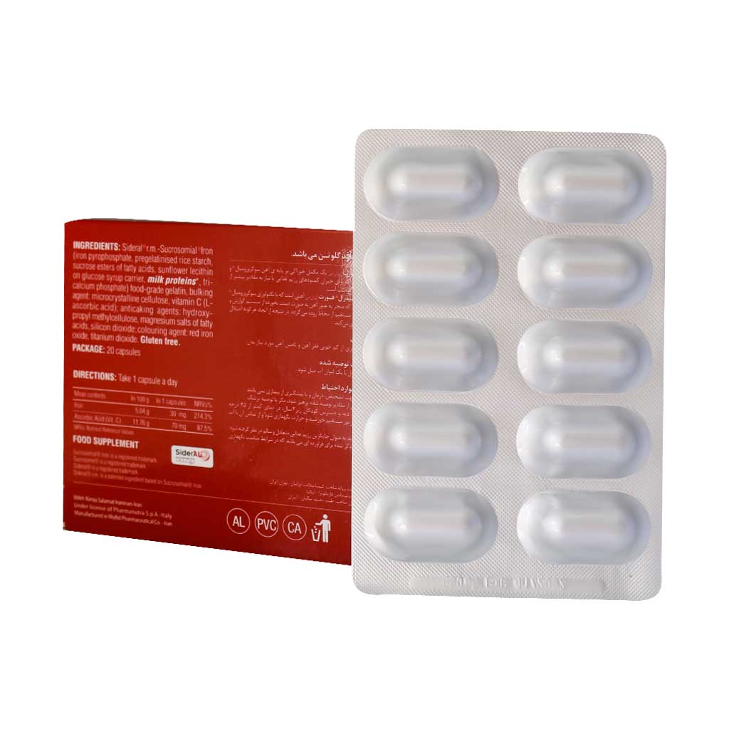 کپسول سیدرال فورت یک مکمل آهن بسیار مؤثر برای درمان کم‌خونی ناشی از فقر آهن است. این محصول با فرمولاسیون پیشرفته حاوی آهن به همراه ویتامین‌های ضروری، جذب بهتری داشته و عوارض گوارشی کمتری ایجاد می‌کند. مناسب برای زنان باردار، افراد مبتلا به کم‌خونی و کسانی که ذخایر آهن پایینی دارند. مصرف منظم آن می‌تواند سطح هموگلوبین خون را افزایش داده و علائم کم‌خونی را برطرف نماید.
